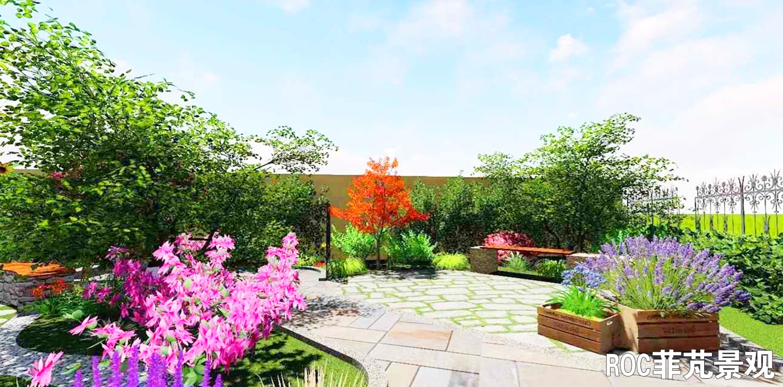 項目四:采菊東籬下的悠然生活,該項目的業(yè)主非常喜歡生活中自己種植一些植物,因此在設計時,更多的采用卵石、銹板等材質(zhì),方便后期業(yè)主自行種植使用。在設計風格上,采取自然田園風格,更多的表現(xiàn)悠然自得的生活方式。